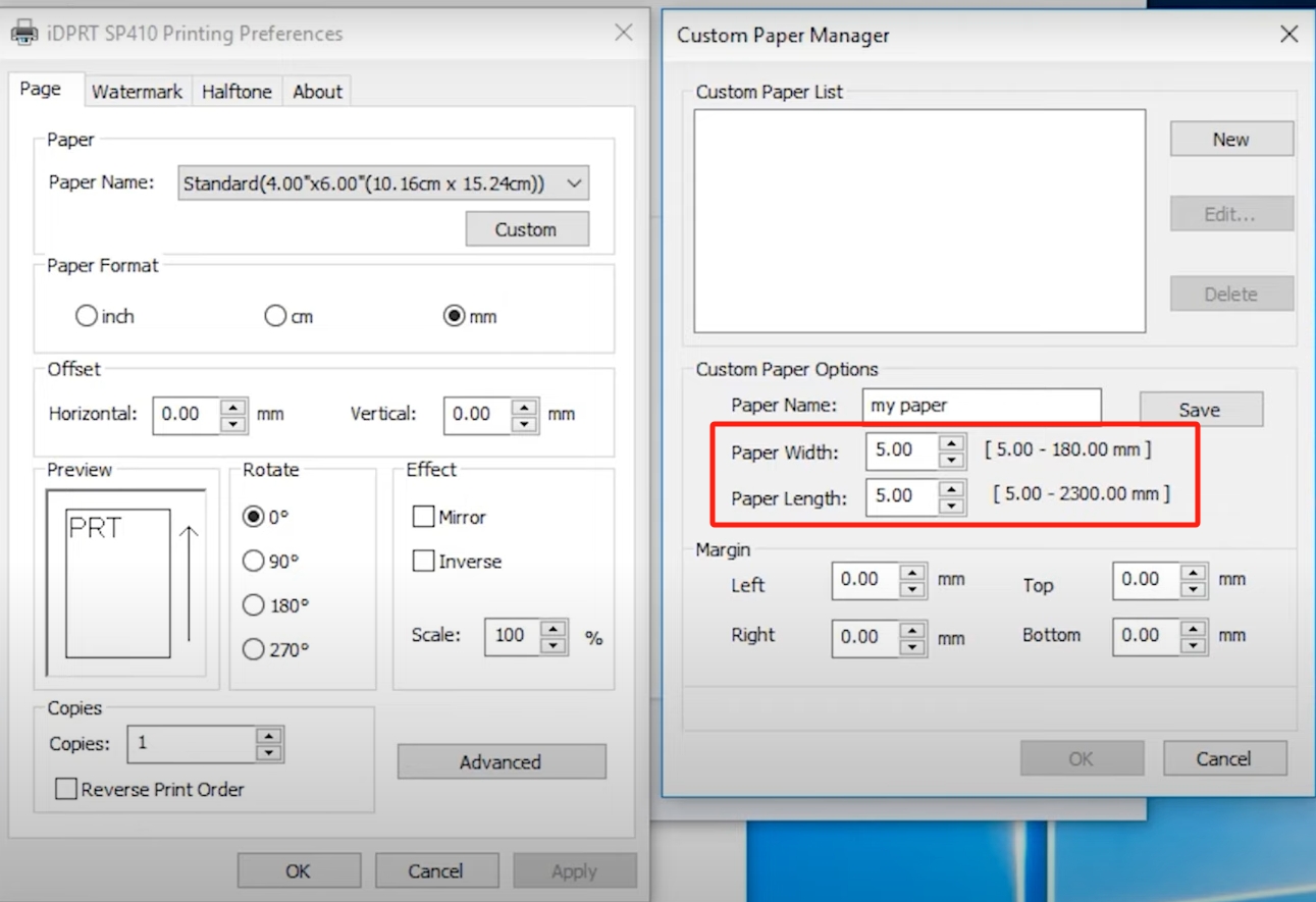 在驱动上设置纸张尺寸大小,确认打印模板尺寸、驱动设置尺寸和纸张实际尺寸一致