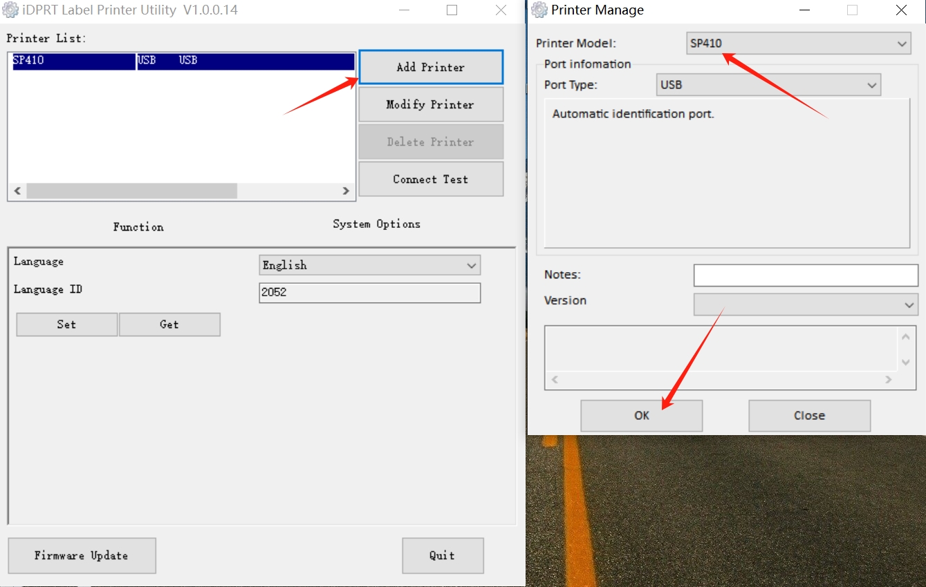 在电脑端安装对应版本工具 iDPRT-Label-Printer-Utility-V1.0.0.6,数据线连接电脑和打印机
