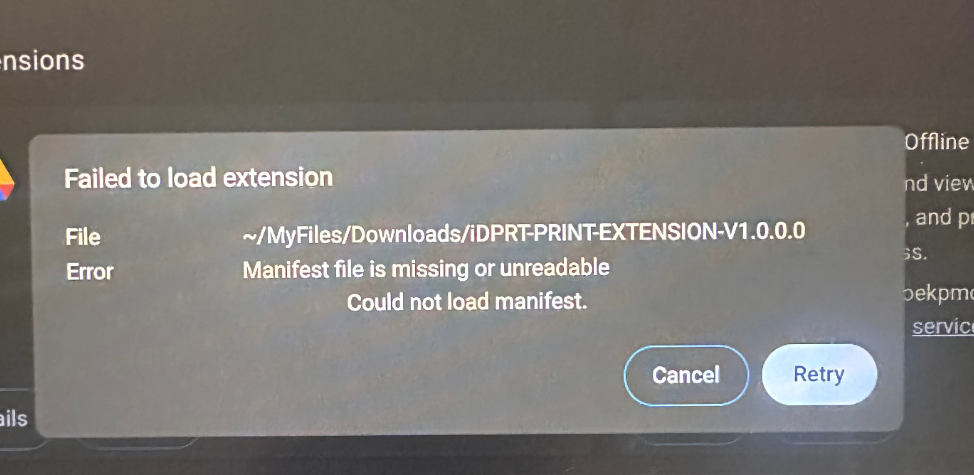 问题20:Chromebook安装打印机驱动提示“Failed to load extension”