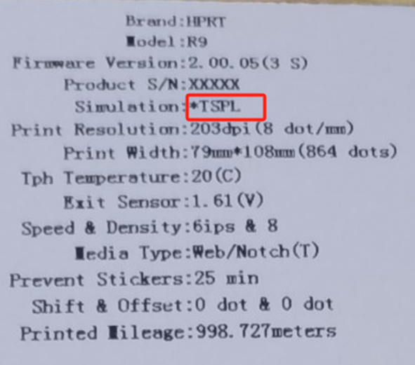 ③自检页上有写TSPL 的,为通用款,驱动程序为2.6.3.0或者2.7.3.20