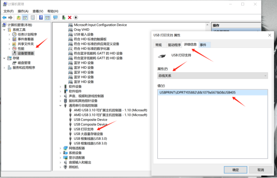 3. 将打印机驱动端口号设置成和电脑识别到的端口号一致,例如下图所示应该将端口设置成USB405。