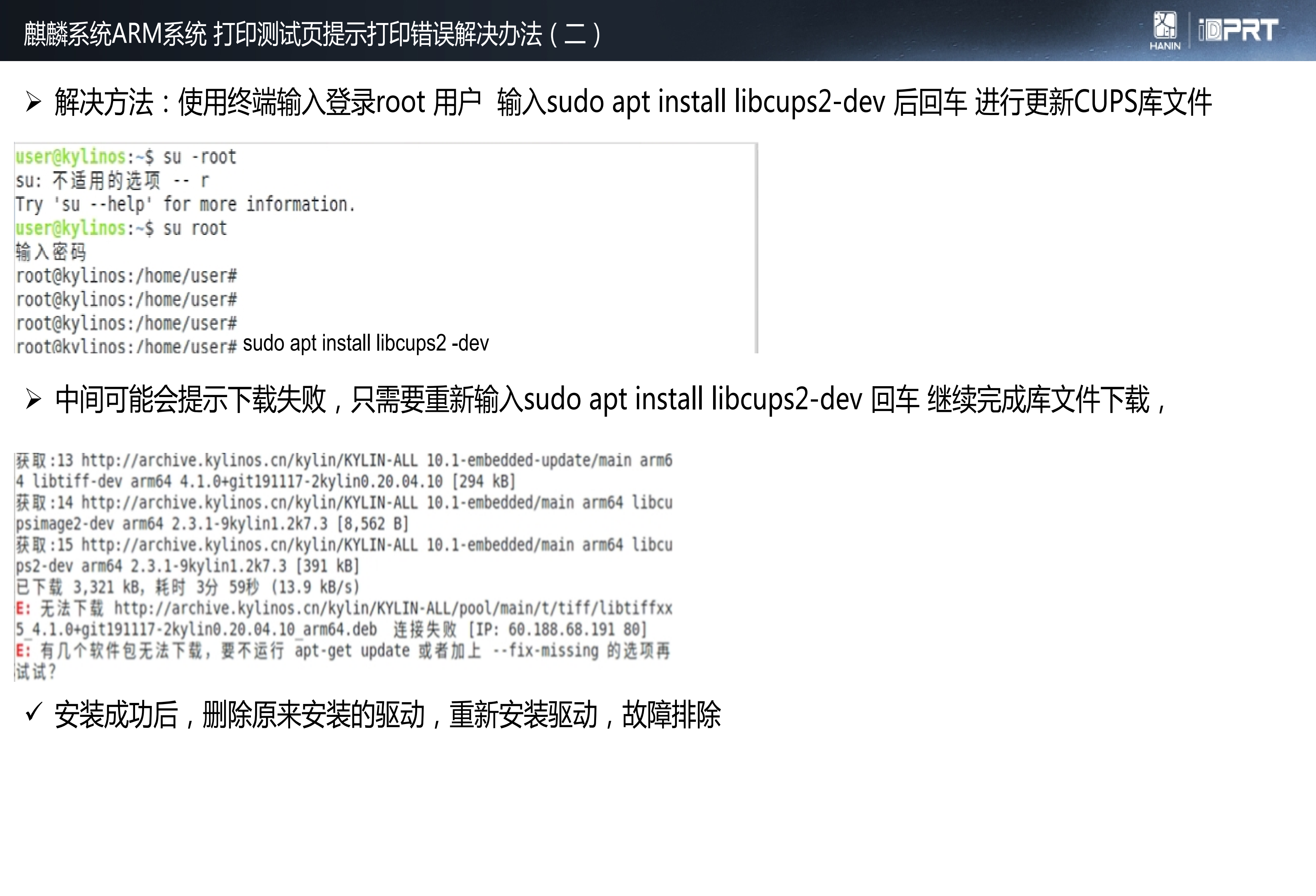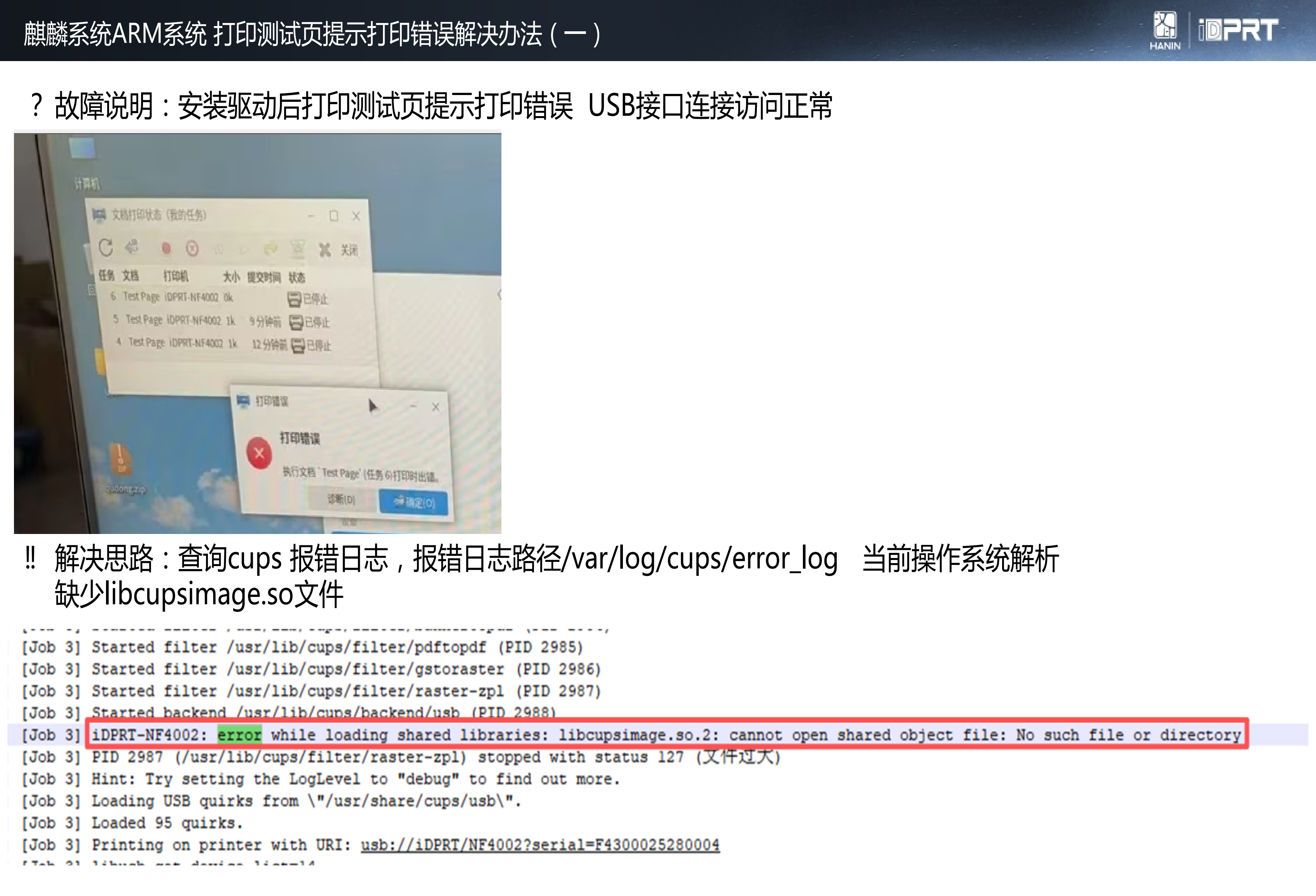 麒麟V10系统安装驱动USB打印测试页失败